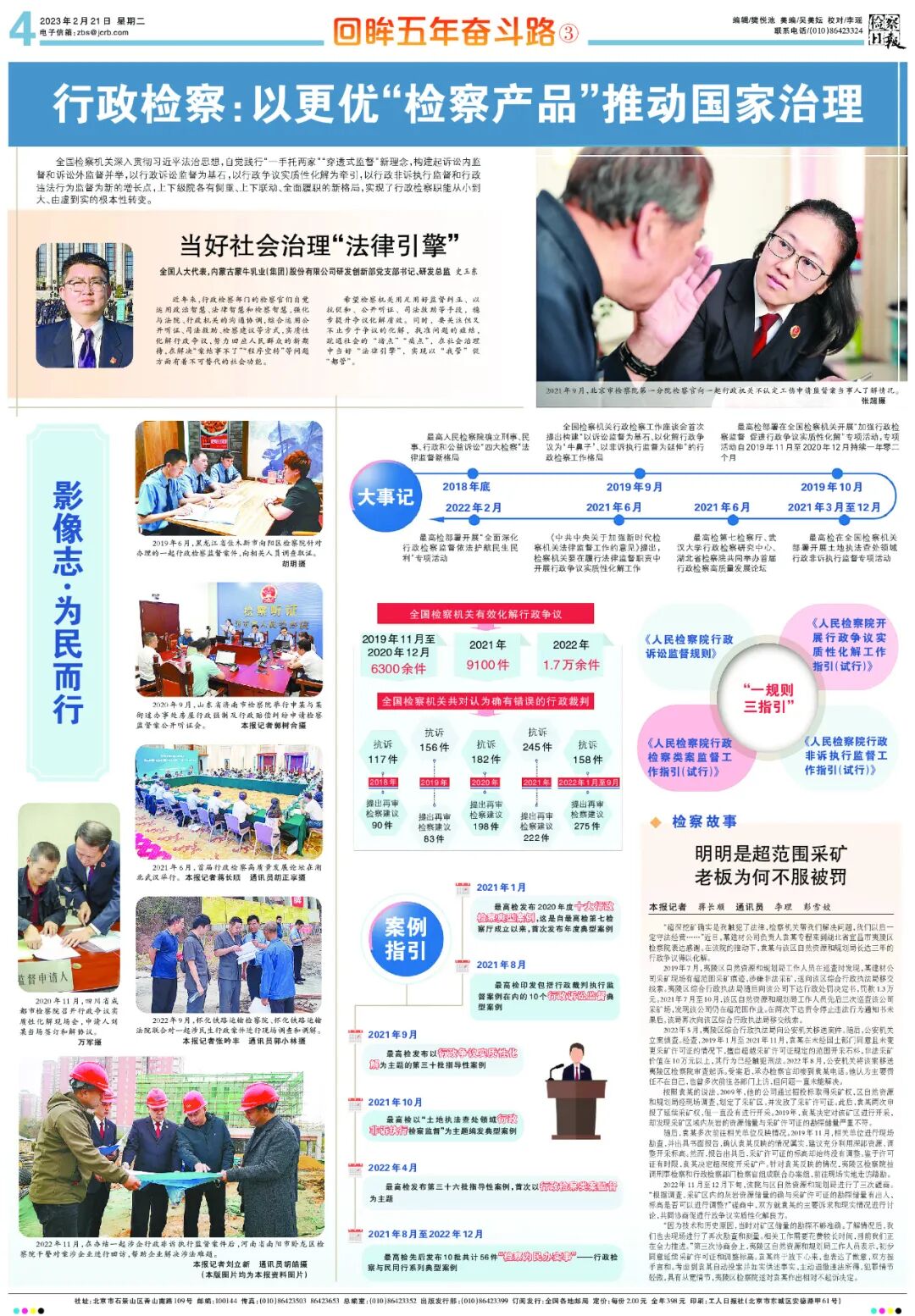 全国检察机关深入贯彻习近平法治思想,自觉践行“一手托两家”“穿透式监督”新理念,构建起诉讼内监督和诉讼外监督并举,以行政诉讼监督为基石,以行政争议实质性化解为牵引,以行政非诉执行监督和行政违法行为监督为新的增长点,上下级院各有侧重、上下联动、全面履职的新格局,实现了行政检察职能从小到大、由虚到实的根本性转变。