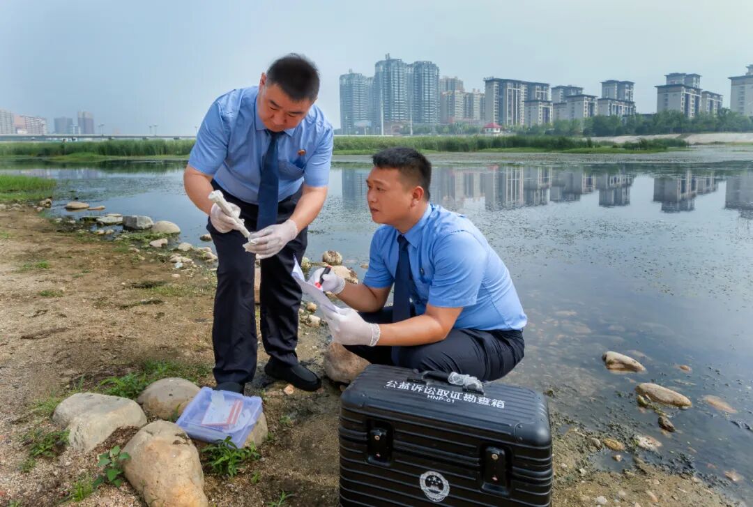 2024年6月20日,河南省南召县人民检察院公益诉讼团队干警正利用快检设备对饮用水源地水质进行检测。梁涛 摄