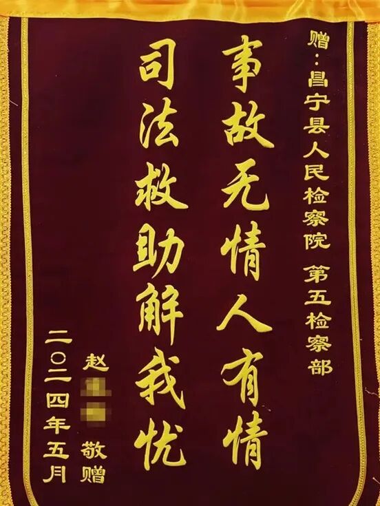 近日,云南省保山市昌宁县检察院接收了一面自厦门远道而来的锦旗,锦旗上印着“事故无情人有情,司法救助解我忧”的感人字样。这面锦旗背后承载着一段深刻的故事:被害人胡某某因不幸遭遇交通事故离世,其家人因此陷入困境,不得不背井离乡,前往福建厦门寻求生计。