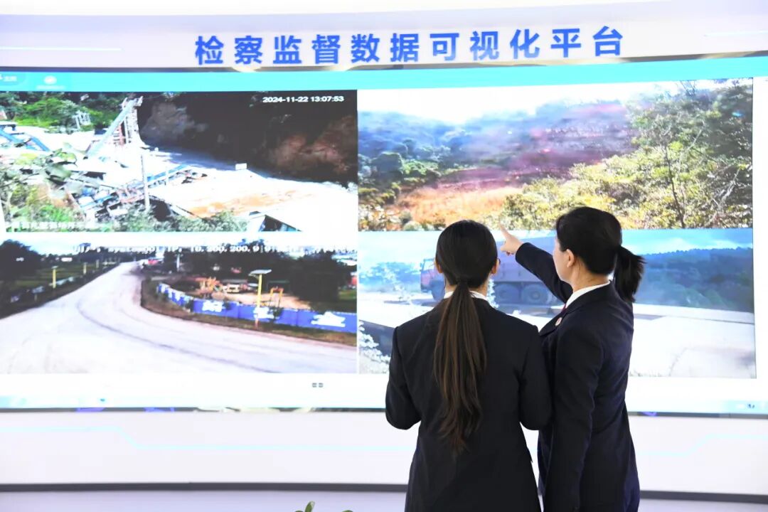 为彻底堵塞环保税征收监管漏洞,云南省楚雄彝族自治州检察院探索构建追缴环保税公益诉讼法律监督模型,运用企业工商登记、税款缴纳、生产用电等数据进行比对筛查,精准排查出漏缴环保税企业,通过依法办理行政公益诉讼案件和督促整改等措施,推动追回环保税款400余万元。同时,该院还与税务部门建立检察监督与税收监管协同联动机制,搭建税收信息共享机制,推动完善环保税的日常监管。图为该院检察官到企业开展相关线索调查,并利用检察监督数据可视化平台进行线索筛查比对。