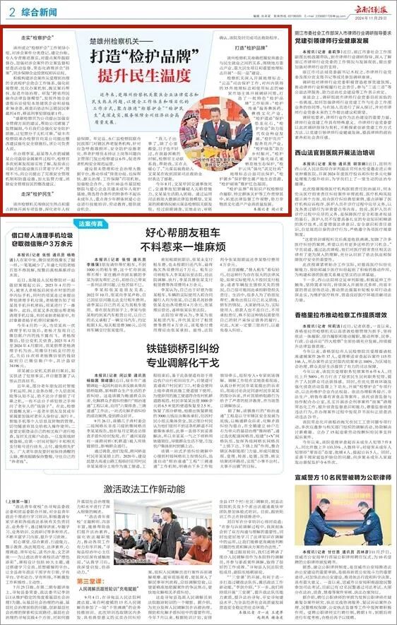 近年来,楚雄州检察机关聚焦企业法律需求和民生热点问题,以健全工作体系和项目化的工作方式,聚力推进“检察护企”“检护民生”走深走实,服务保障全州经济社会高质量发展。