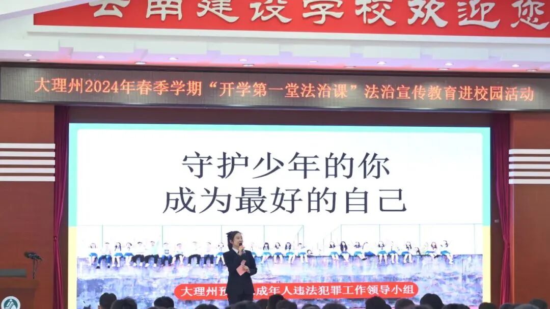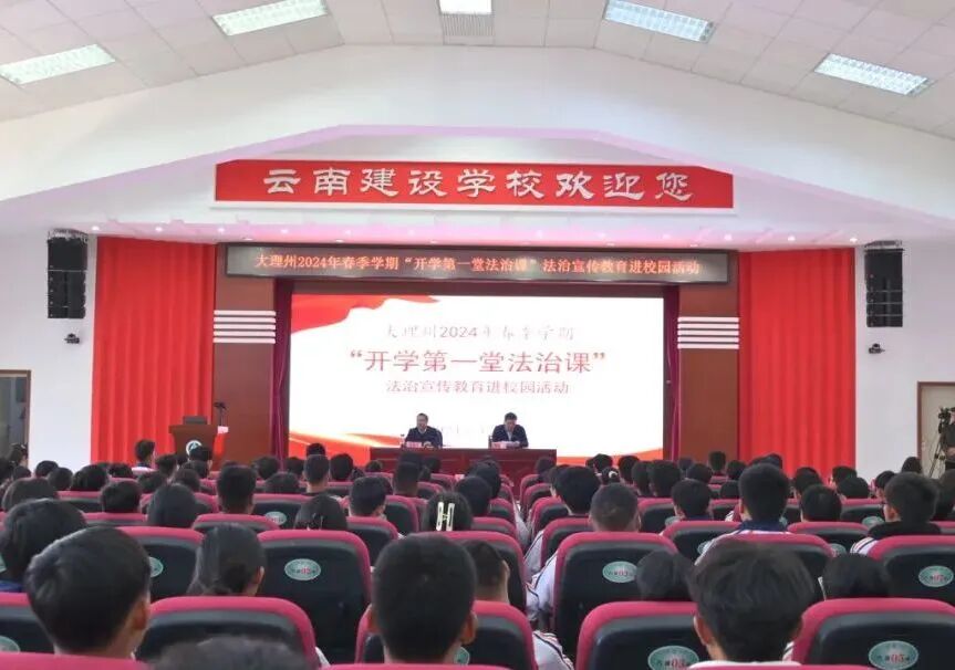 3月1日下午,大理州各中小学校同步开展2024年春季学期“开学第一堂法治课”法治宣传教育进校园活动。活动在云南建设学校设主会场,全州各中小学校以网络直播的形式进行,共有1105所中小学校、45万余教职工及四年级以上学生参加。