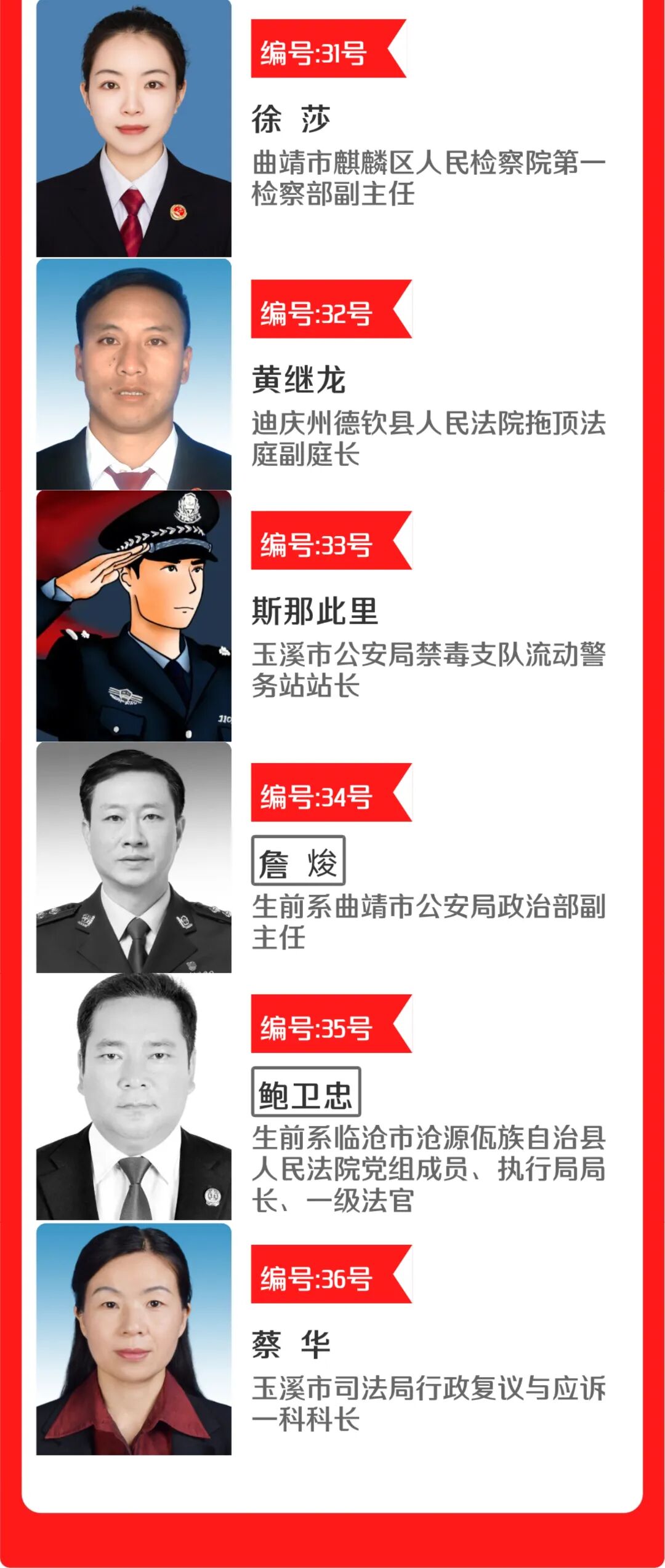 此次入围2023年度云南“最美政法干警”的36名候选人,便是其中优秀的代表。此次评选活动参与方式以网络点赞为主,时间截止:9月30日。