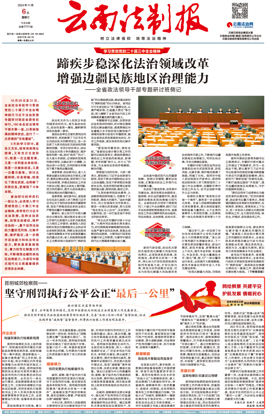面对辖区内监管场所数量多、分布散等实际情况,昆明市检察机关积极适应法律监督工作发展要求,推动昆明市辖区内派驻监狱检察管理体制改革,完善“派驻+巡回+科技”监督机制,依法依规审查“减假暂”监督案件,刑事执行检察工作质效明显提升。