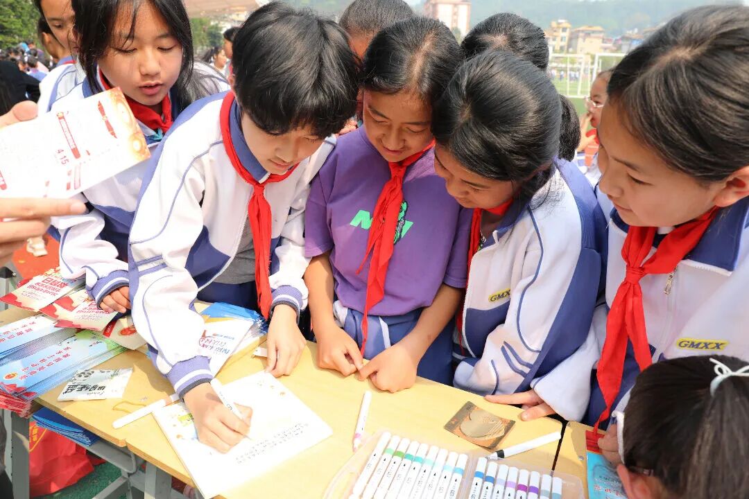 在法治飞行棋的另一边,检察人员还摆放起宣传展板,设置起留言墙和法治标语拍照打卡点,让同学们在充分享受快乐时光的同时,接受法治文化的熏陶和感染,在一个个趣味盎然的游戏互动中获得法治滋养、增强法治观念。