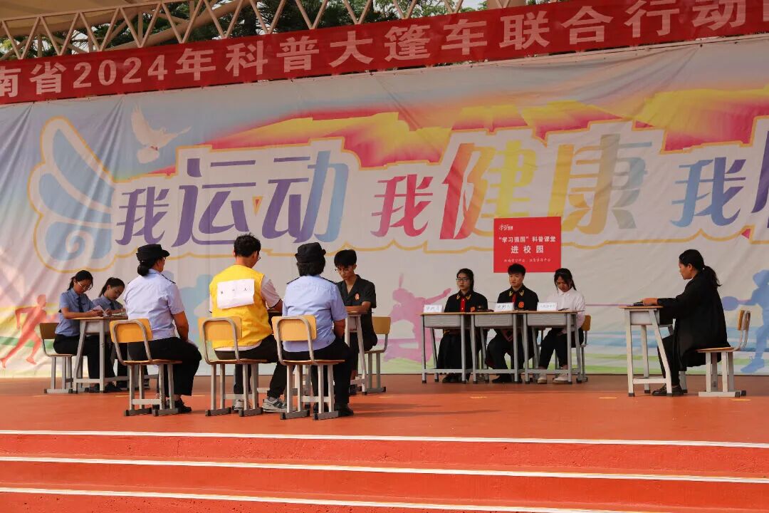 操场一角的普法“摊位”