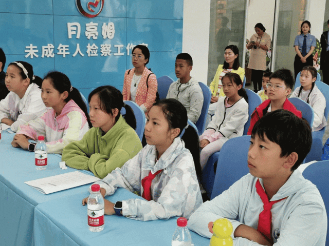 “月亮姆”检察官带领同学们参观未成年人检察工作室,观看了微动漫《刘三姐说检察》《你的成长 我来守护》未成年人检察公益宣传片,介绍检察院相关职能、未成年人检察职能、检察办案流程等。