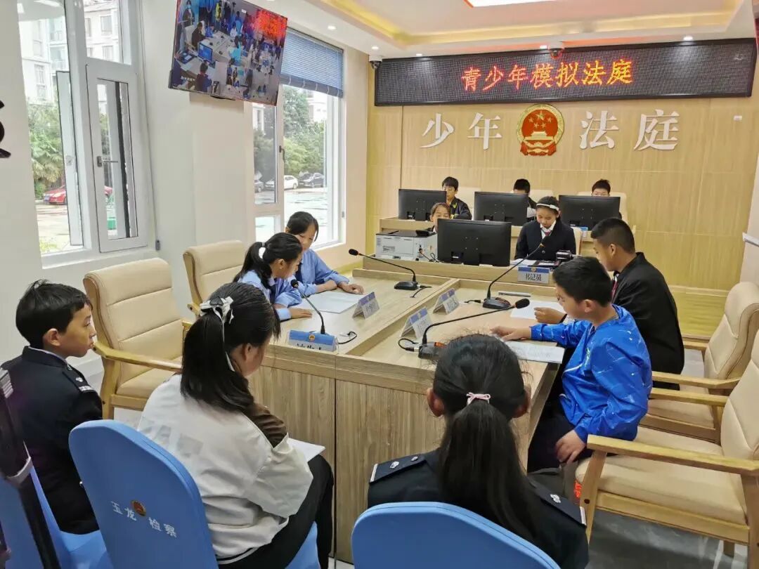 “现在开庭!请全体起立!”随着“审判长”庄严有力的宣告,一起以“未成年人校园敲诈勒索”为案例的模拟法庭正式开始。在检察人员的指导下,同学们分别饰演审判长、书记员、检察官、辩护人、被告人、法警等,大家迅速投入到审判工作中,展现了一个“真实”的庭审现场。