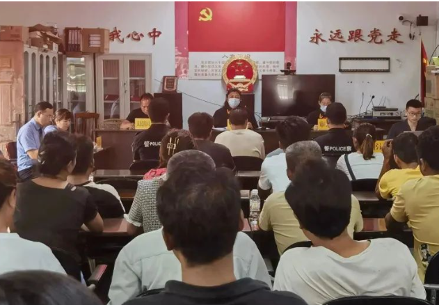 近日,澜沧县检察院依法对陈某某涉嫌贩卖毒品罪一案提起公诉,该案在澜沧县上允镇下允村开庭审理,检察官对被告人及旁听群众进行现场法治宣传教育。