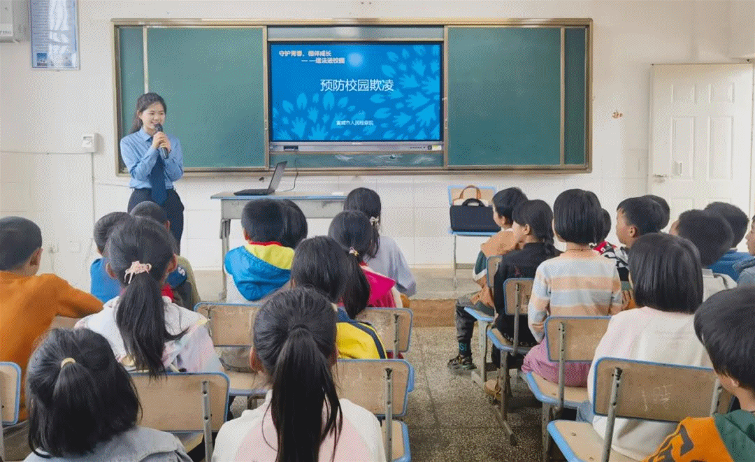 在得禄肥谷小学,检察人员围绕“校园欺凌”这一话题,通过游戏互动、一问一答等多种形式,为同学们送去了一场生动有趣的法治课,教会同学们面对危险如何自我保护。