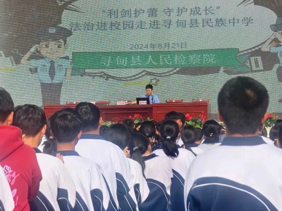 近日,寻甸县检察院“绿芽”未检团队走进寻甸县民族中学,为500余名师生们带来一堂精彩纷呈的法治课,让学生们除了在军训中磨炼身心、锻炼意志外,还能畅享检察官送来的“法治大餐”。
