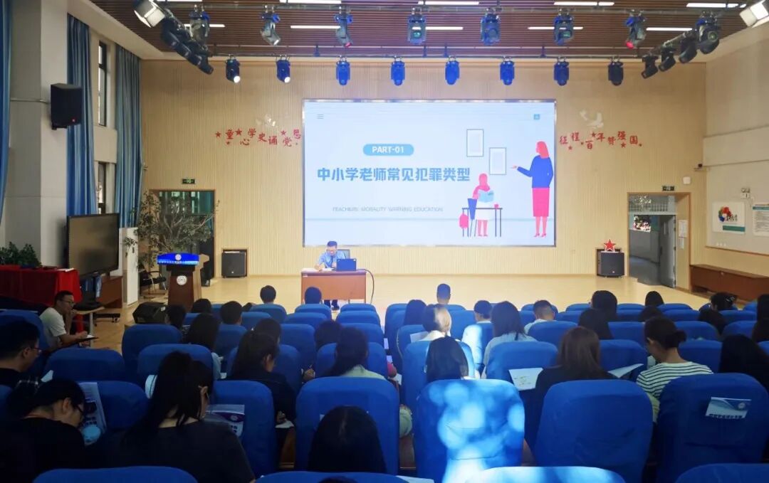 检察官结合教师的权利义务,重点讲解了近年来中小学教师在执教过程中常见的具体犯罪类型、常见的法律风险和应对措施。并从坚定政治方向、自觉爱国守法、传播优秀文化、关心关爱学生、加强安全防范五个方面深入分析了十一个典型案例,以案为鉴,引导教师在工作、生活中树立法治思维,不去触碰法律的底线和纪律的红线,自觉做一名知法、守法、依法执教的好园丁。
