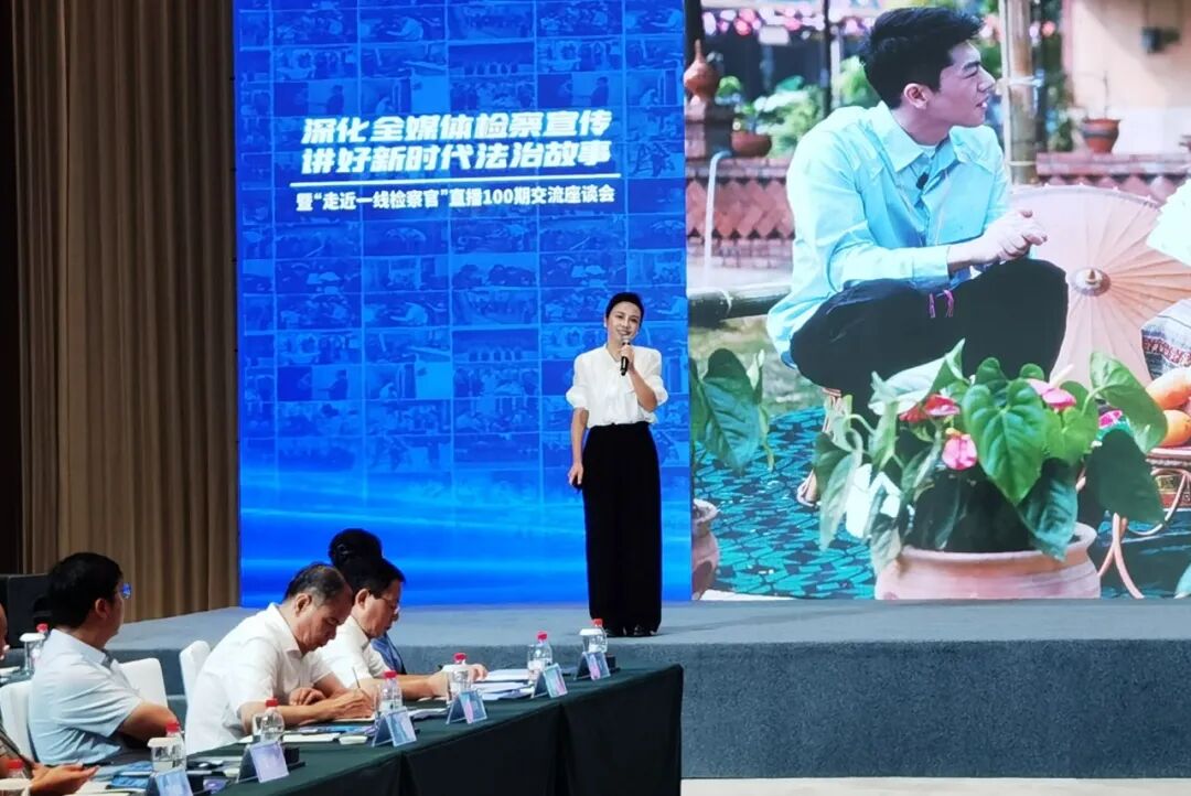 9月19日,最高检新闻办组织召开“深化全媒体检察宣传,讲好新时代法治故事”暨“走进一线检察官”直播100期交流座谈会,邀请中央有关部门、中央主流媒体、网络平台等相关部门领导、专家、学者,以及云南等9个省部分检察院宣传工作负责人,围绕“走进一线检察官”直播品牌建设和提升全媒体检察宣传质效等主题进行深入交流。云南省景洪市检察院副检察长玉喃溜应邀作交流发言,介绍景洪市检察院直播普法故事。