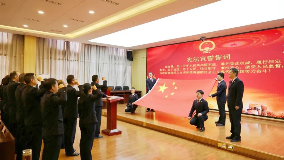 12月4日,在第十一个国家宪法日当天,文山州检察院举行新任职、新入职、新晋升人员宪法宣誓仪式。14名2024年新任职、新调入、新入职检察人员列队站立,举起右拳,用铮铮誓言表达忠于宪法、恪尽职守、司法为民、廉洁奉公的坚定决心。