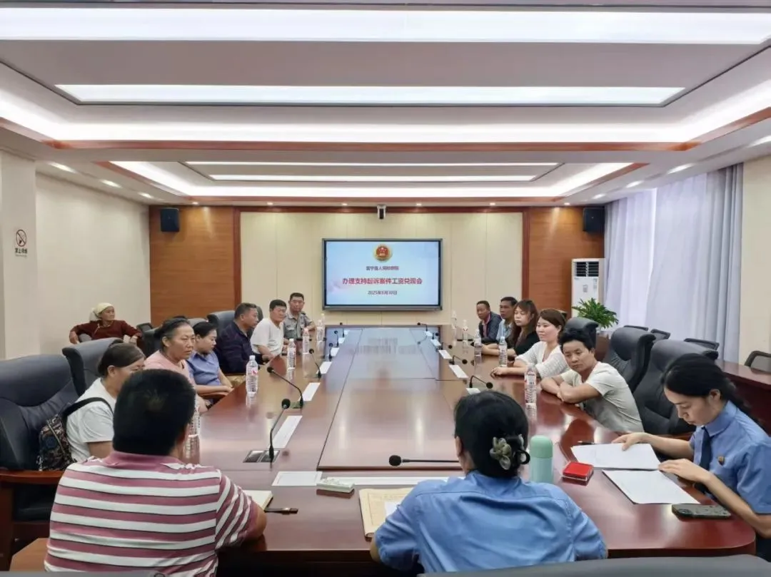 2025年1月底至2月初,多名劳动者先后到富宁县检察院反映被某物业公司拖欠工资,向检察机关申请支持起诉,要求帮助讨要被拖欠的工资。办案检察官详细了解欠薪的情况,经审查认为该批案件符合检察机关办理支持起诉案件的条件。